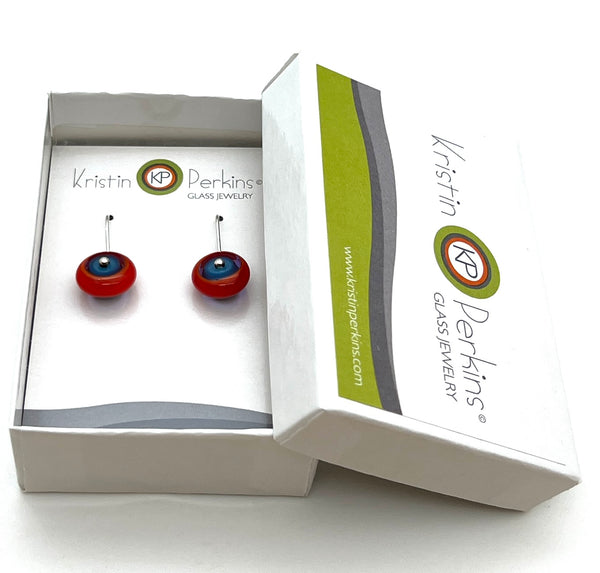 These earrings measure approximately 1" long. The glass is approximately .5” in diameter.