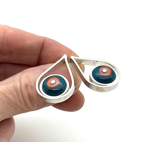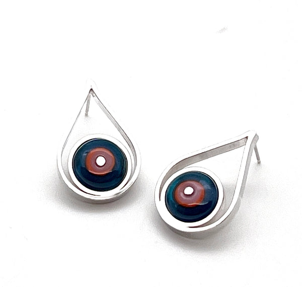 These colorful, modern raindrop shaped earrings really make a statement! This is the first time I’m making them in the short stud version. You will receive large sterling silver backs with your earrings