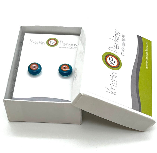 Circle Stud Earrings in Turquoise, Blue, Pink, and Orange Glass and Sterling Silver