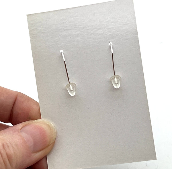 Your earrings will ship in this attractive gift box with rubber stoppers for you to wear with your earrings to keep them secure.