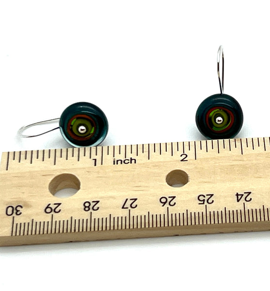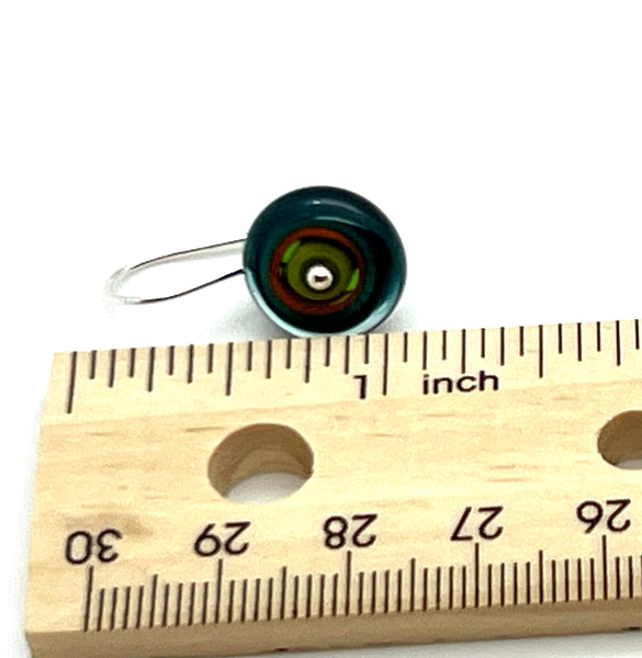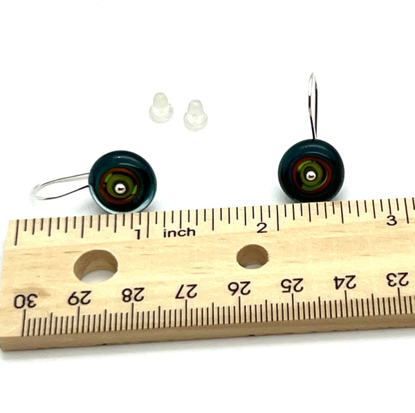 These earrings measure approximately 1" long. The glass is approximately .6” diameter.